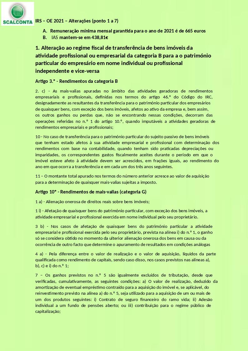 IRS DE 2020–OE 2021–ALTERAÇÕES